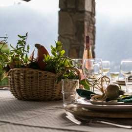 You will enjoy a 4-course menu including a starter, pasta, a main course with a side dish, and dessert, with drinks included (water, selection of red and white wines from regional cellars and coffee). At the conclusion of your experience, you will also be free to take a souvenir back home: an official apron.